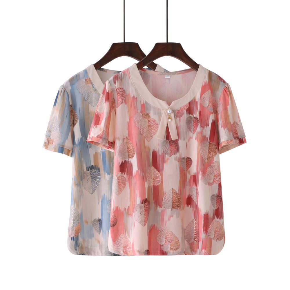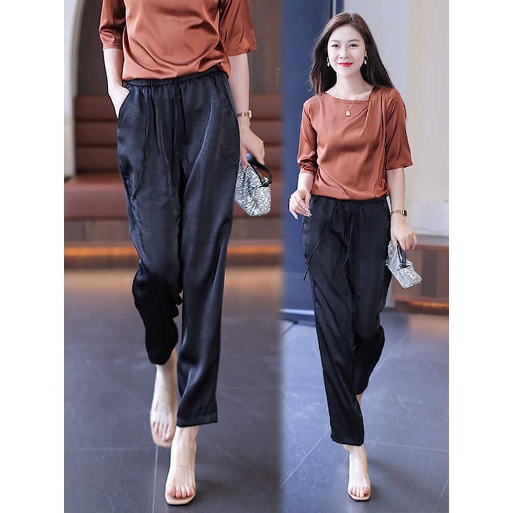 若い母親の夏服 2025 新しいアイスシルク半袖 T シャツ中高年ファッション 2 点セットおばあちゃんスタイルスーツ