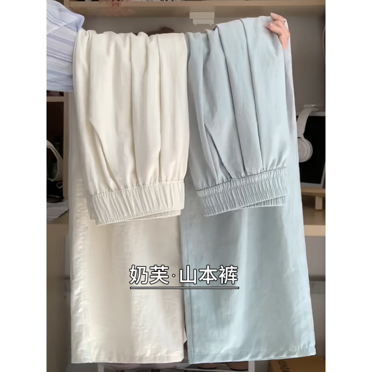 アイスシルクミルク山本パンツ女性の夏の薄い新しいカジュアル小柄な質感怠惰な白ワイドレッグパンツ