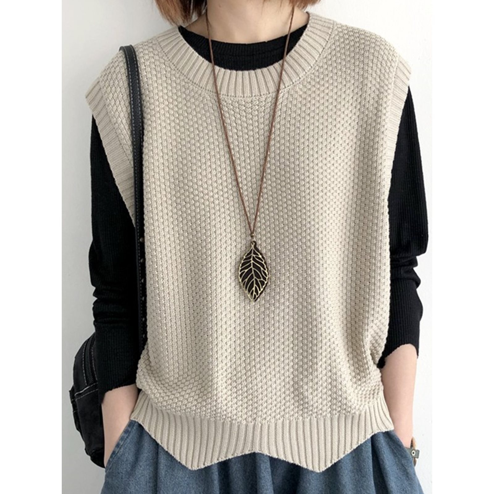 ニットセーターベスト女性の新しいヨーロッパスタイル 2025 ベスト西洋スタイル不規則なベスト秋のアウターラウンドネックベスト