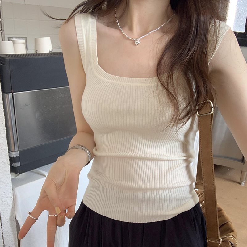 suseyiku ワイドショルダーストラップキャミソールアウターウェアレディース春夏新作スリムフィットノースリーブニットトップ