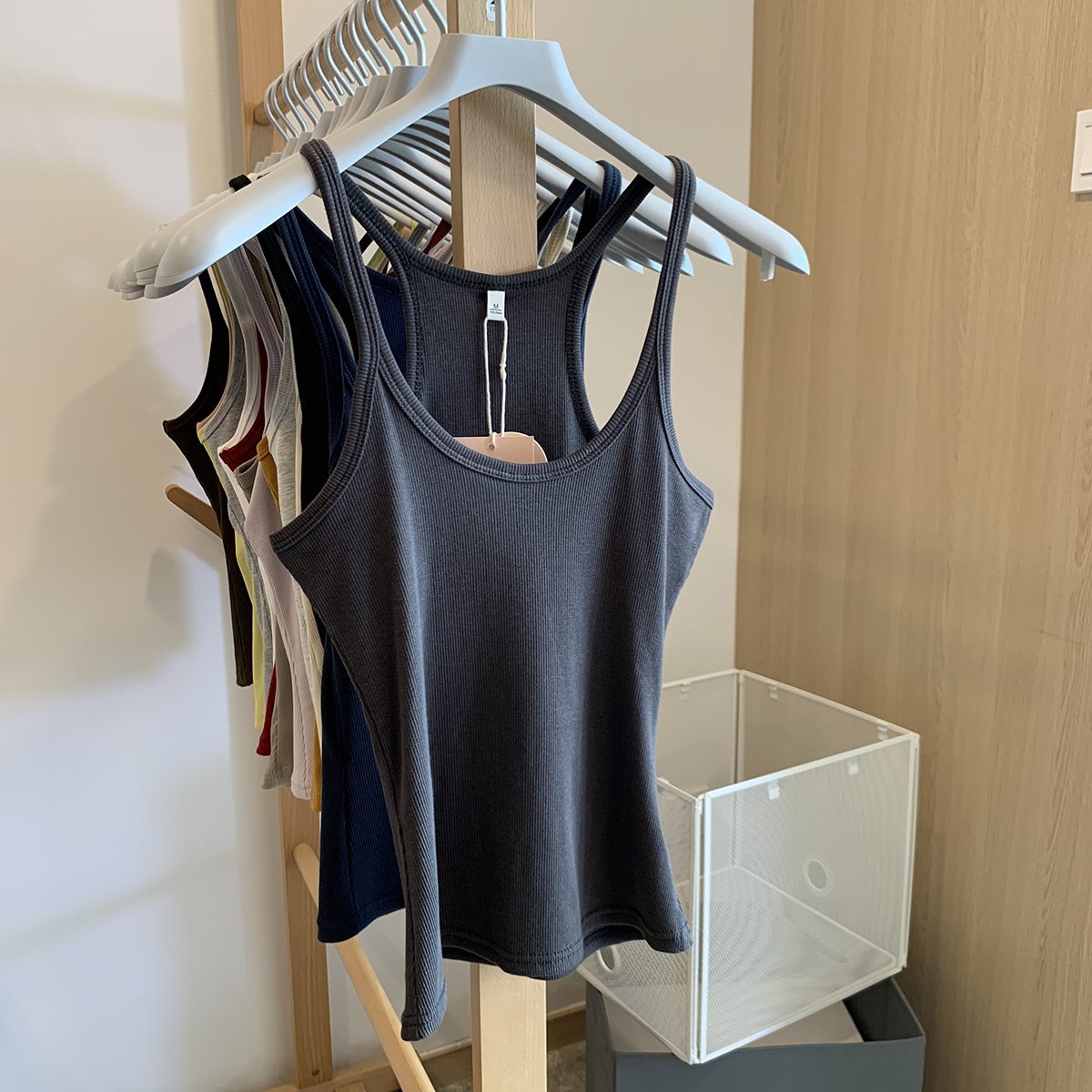 サスペンダーレディーススーツインナー2025夏ベーシックベストボトムホワイトカバー胸外着無地トップ