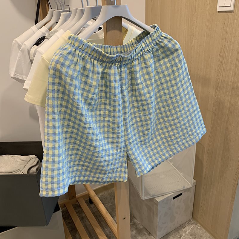 ウォーキングパンツ、チェック柄パジャマ、女性用夏用薄手ホームレイジーパンツ、ストレートカジュアルワイドレッグパンツ、ホームショーツ