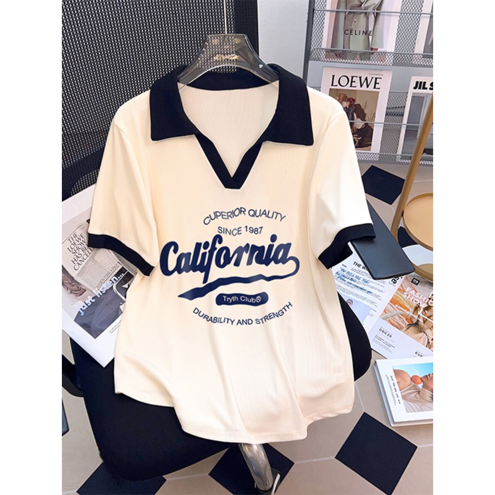 ファットmm 150kg プラスサイズコントラストカラーアイスシルク半袖トップ女性の夏ルーズ痩身カバーアップポロカラー半袖Tシャツ