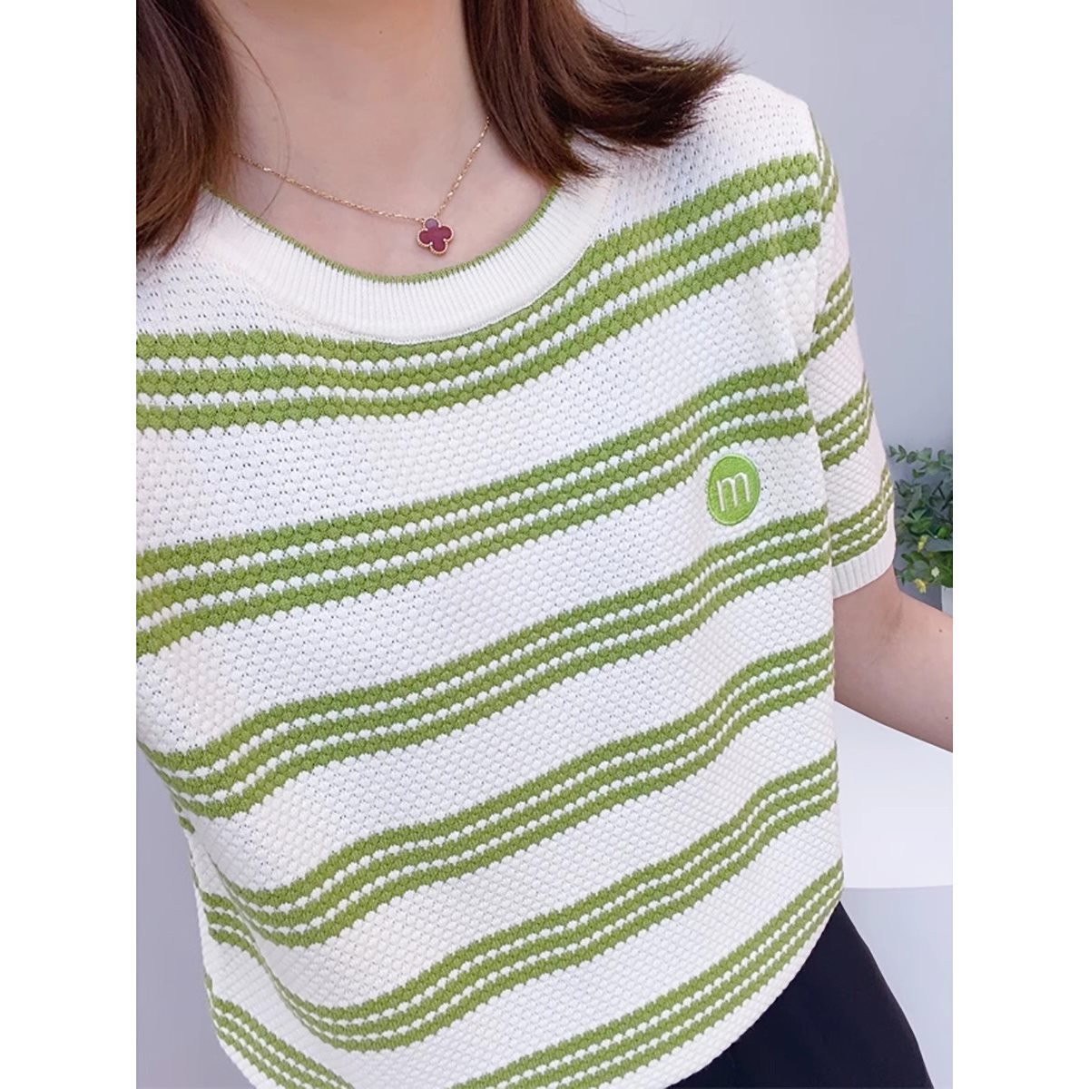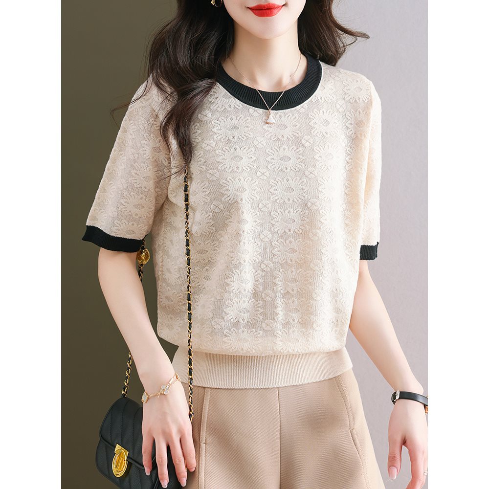 若い母親の夏半袖Tシャツアイスシルク中年女性ニットシャツジャカード中高年女性薄手トップスーツ