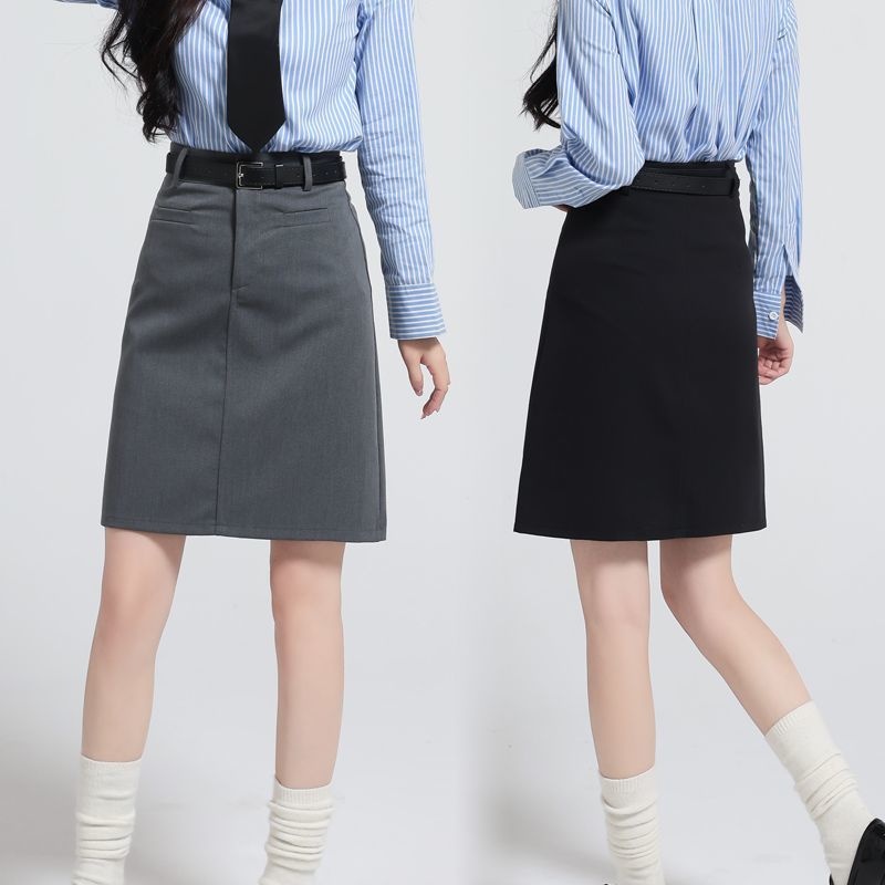 アメリカのレトロなスーツの半身のスカートの女性の夏はやせている灰色の包みの尻の長いスカートのデザイン感があります。