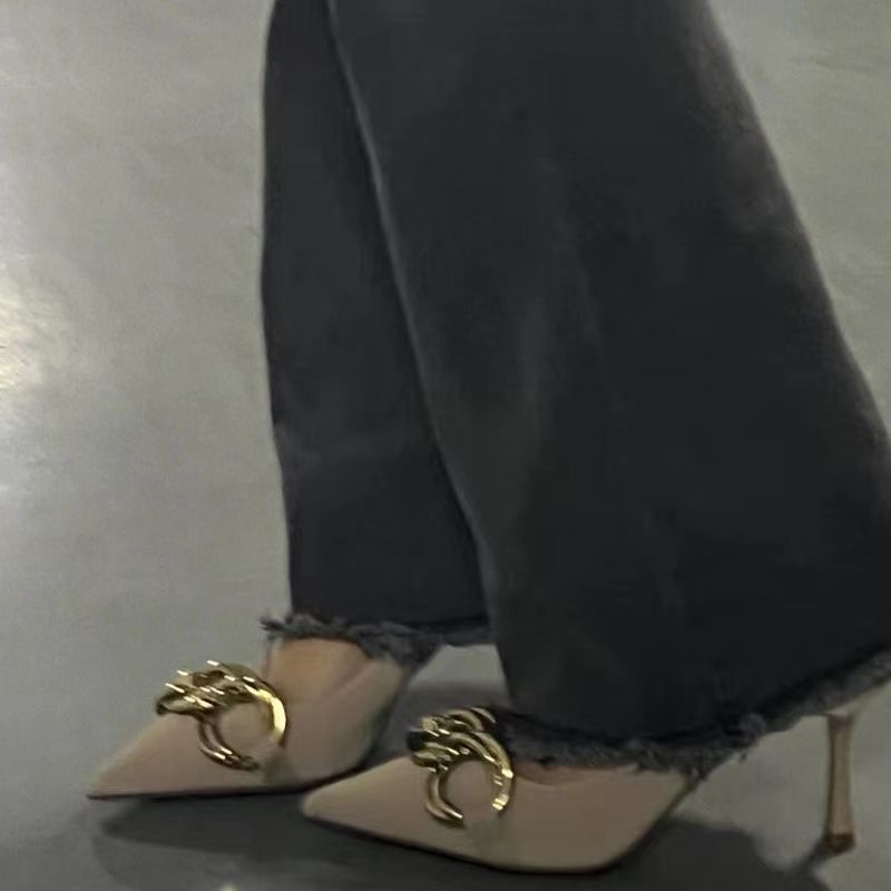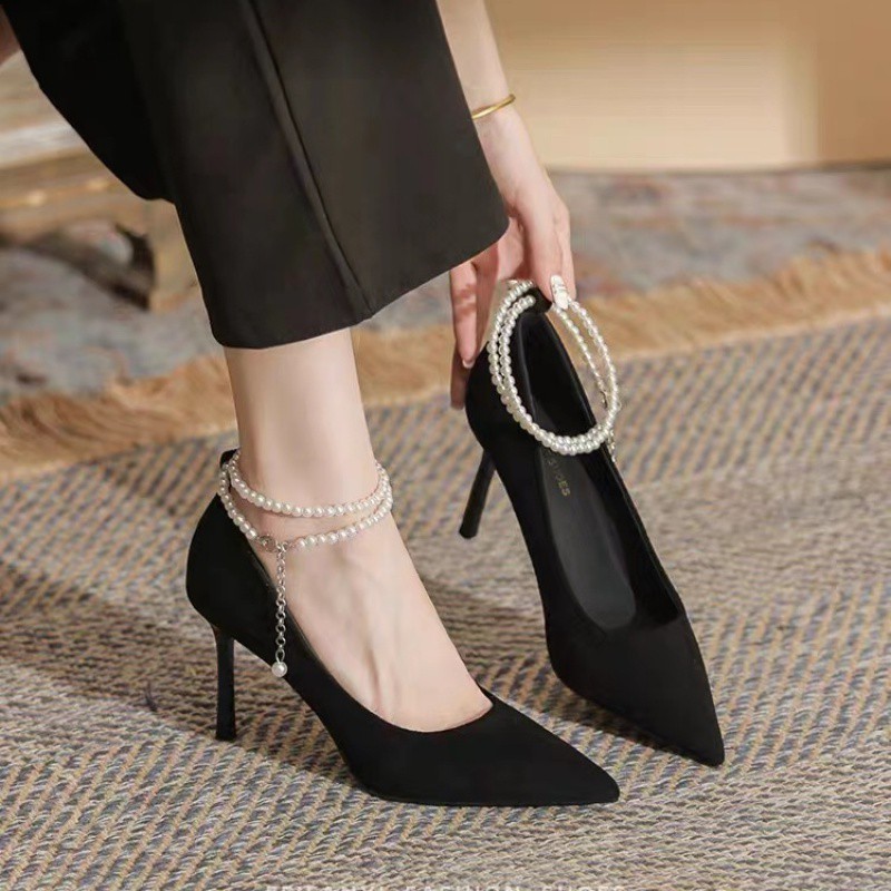 先の尖ったハイヒールの高さは2024年に新型の一字で真珠のチェーンを持っています。