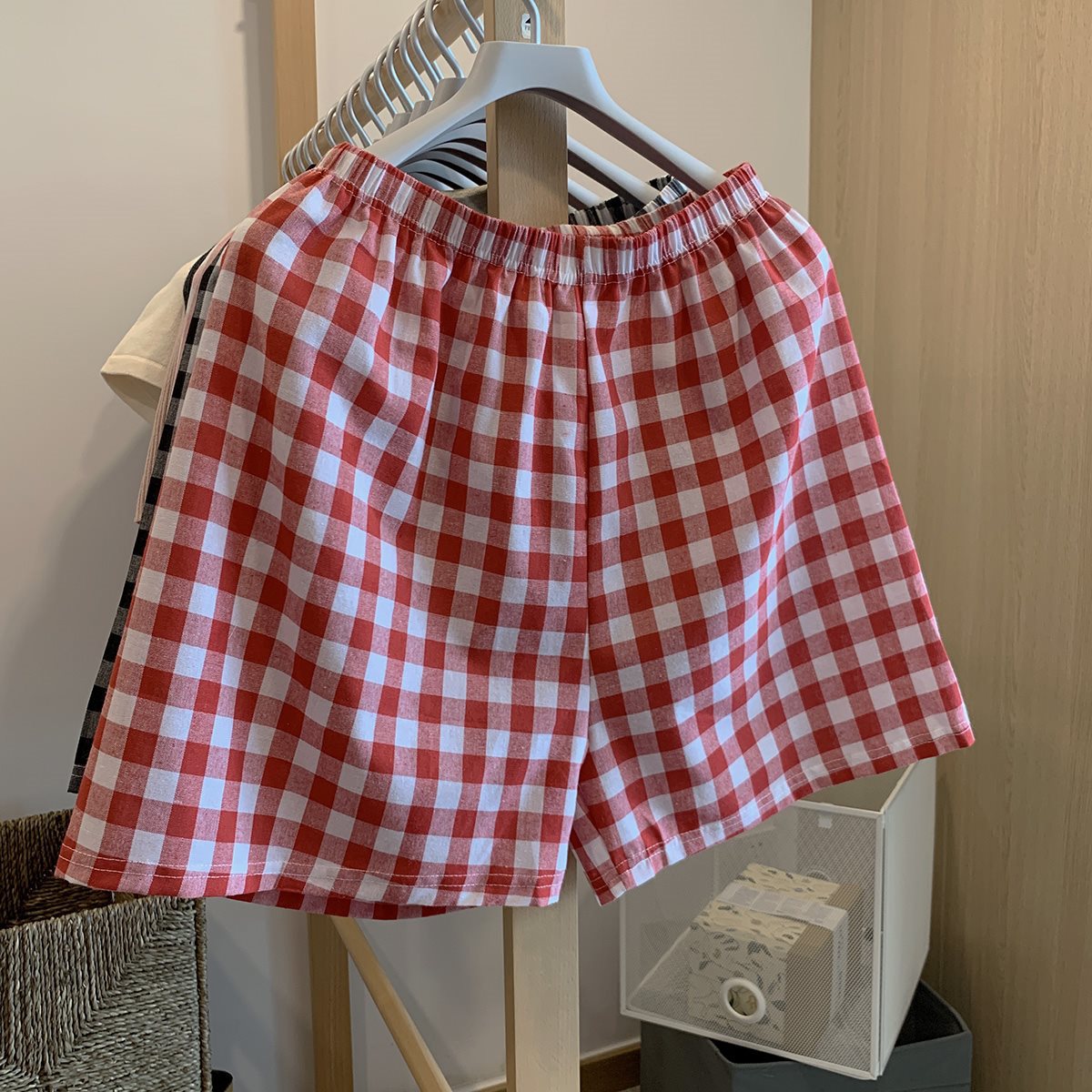 suseyiku 2025 夏チェック柄ショーツ女性の薄いスポーツハイウエストスリムワイドレッグルーズカジュアルパジャマ