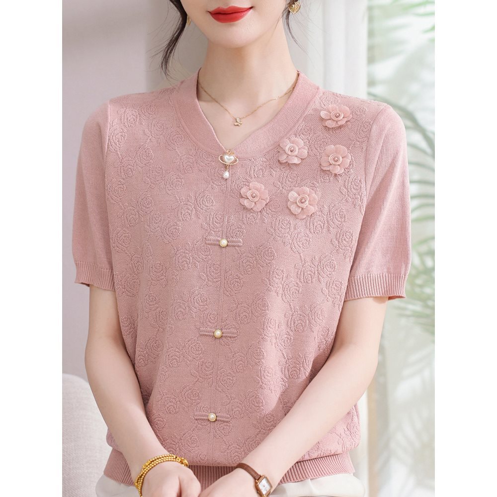 母の日ママ夏半袖Tシャツアイスシルクシャツ中高年女性夏のファッション万能気質トップス