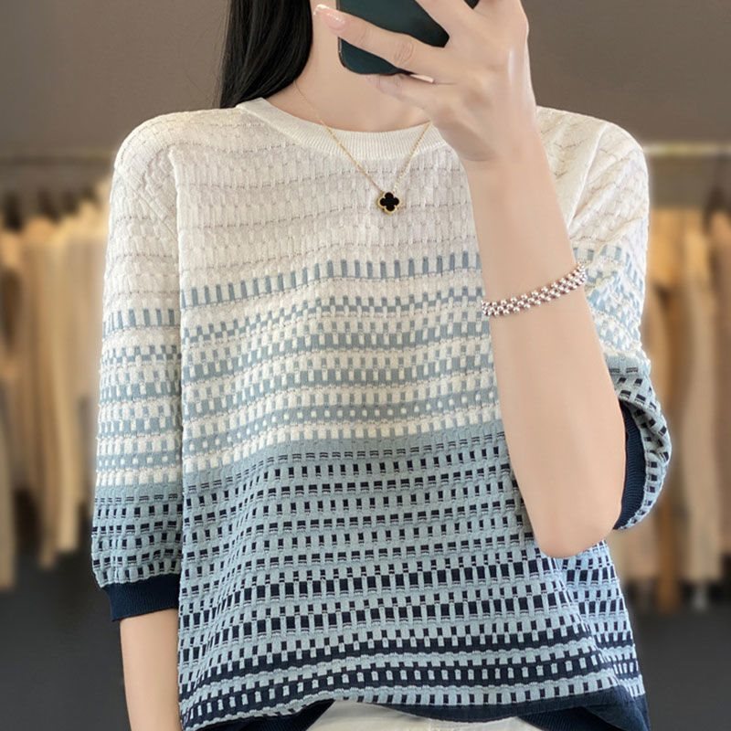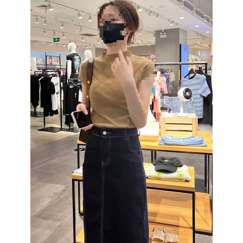 夏薄いアイスシルク半袖 Tシャツ女性の香港スタイルトップス 2025 新しいファッションスリム気質半袖セーター