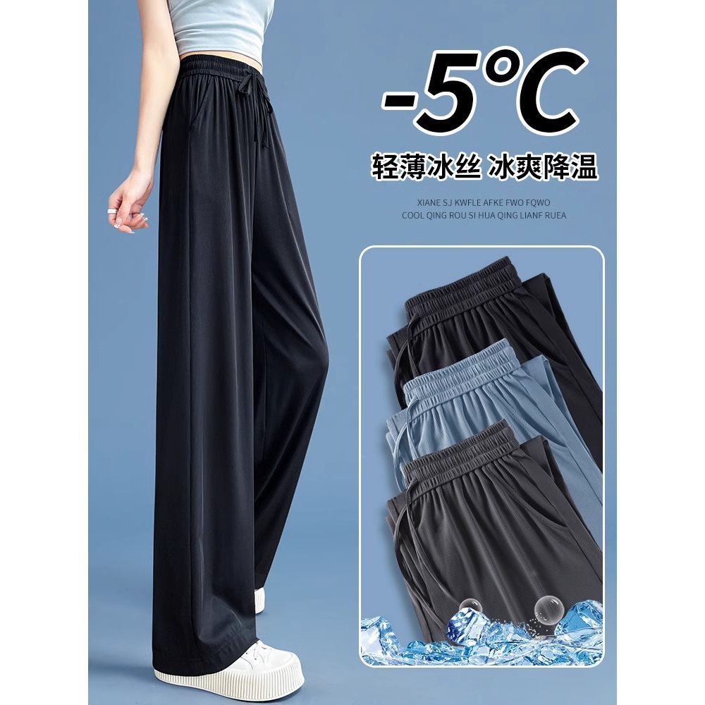 ファットmmプラスサイズアイスシルクワイドレッグパンツ女性用夏薄いルーズナローバージョン防蚊カジュアルパンツドレープストレート日焼け止めパンツ