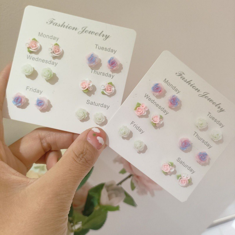 小清新銀針シンプル小衆花イヤリング2024新作少女学生耳飾りセット