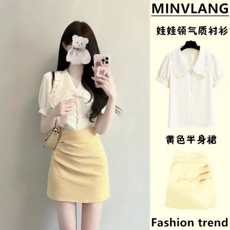 夏のデザインの雰囲気は有名です。デザイン感はお姉さんの軽熟風の小さい大衆の子供の襟のシャツの半身のスカートのスーツに乗ります。