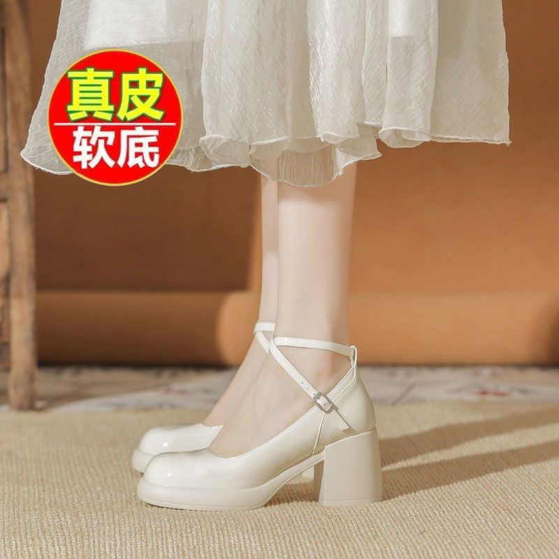 フレンチ式のマリージェンヒールハイヒールハイハイ新型太さとヘボン風のクロスバンドのレトロな靴の柔らかい底にスカートがついています。