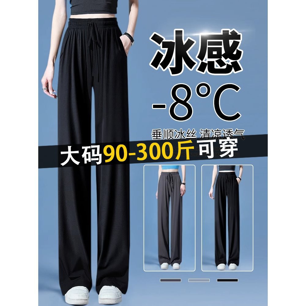 150kg 特大サイズファットミリメートルアイスシルクワイドレッグパンツ女性の夏薄いハイウエストストレートドレープカジュアル日焼け止めパンツ