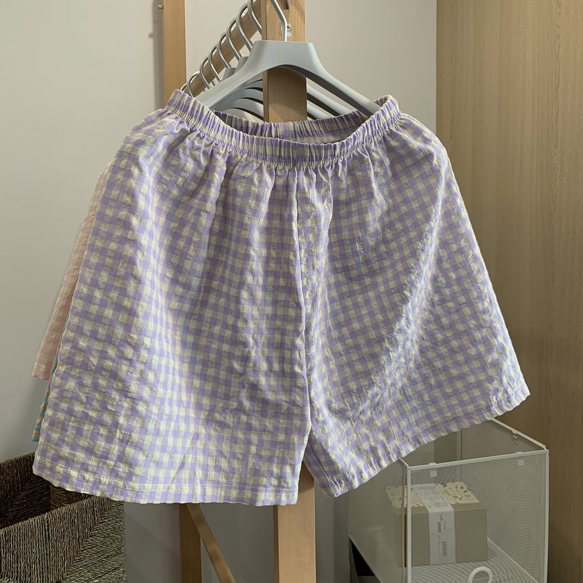 2025 新チェック柄ショーツ女性の夏薄い ins 韓国スタイルスポーツハイウエスト痩身ワイドレッグルーズカジュアルパジャマ