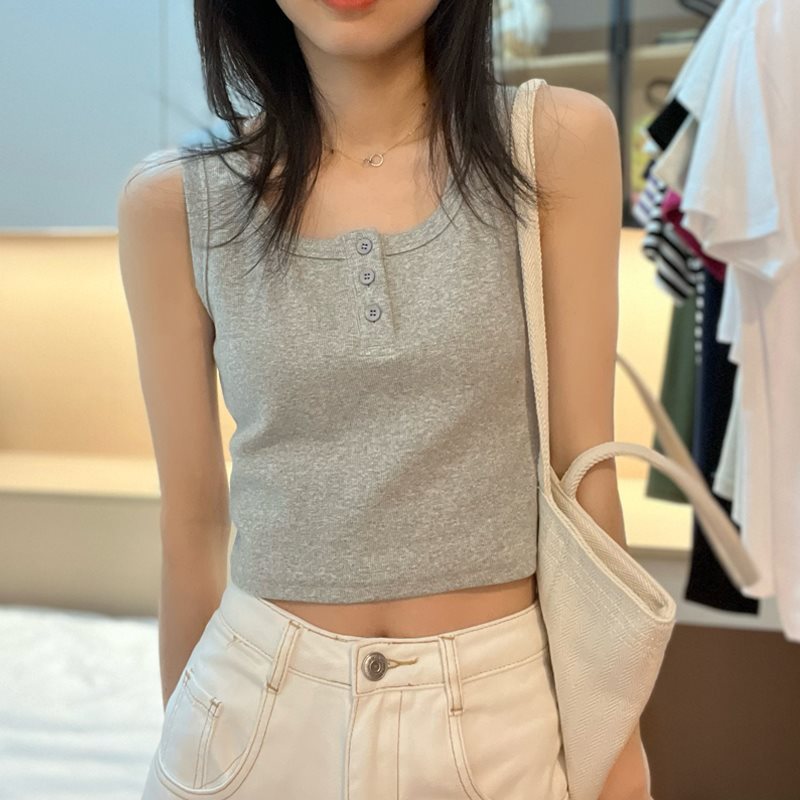 夏用スイートガールショートキャミソールレディースニッチスレッドアウターウェア露出防止美背中ノースリーブトップトレンディ