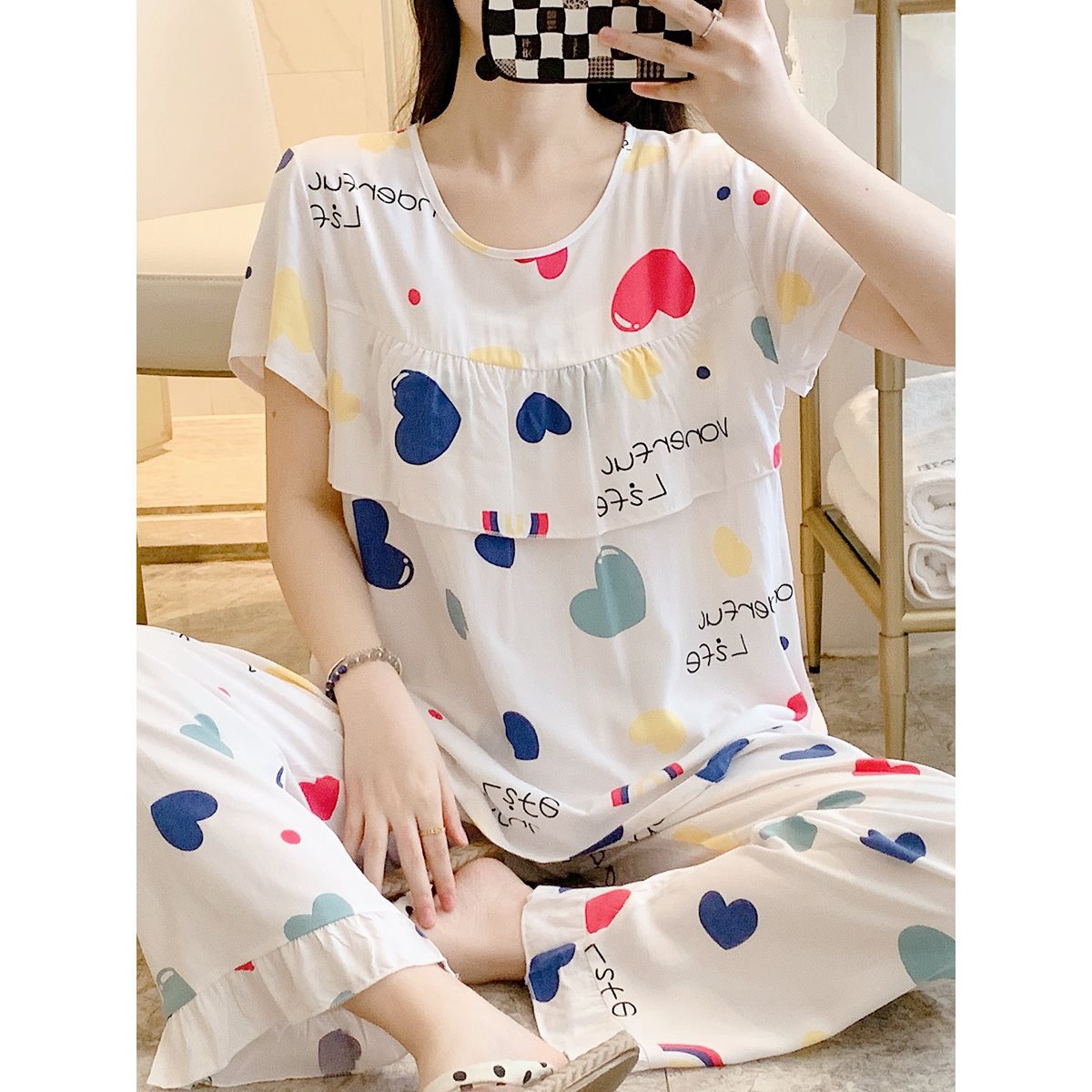 2025 新しい綿シルクパジャマ女性の夏の薄い半袖ズボンスーツルーズ韓国スタイル新鮮な抗膨らみホーム服