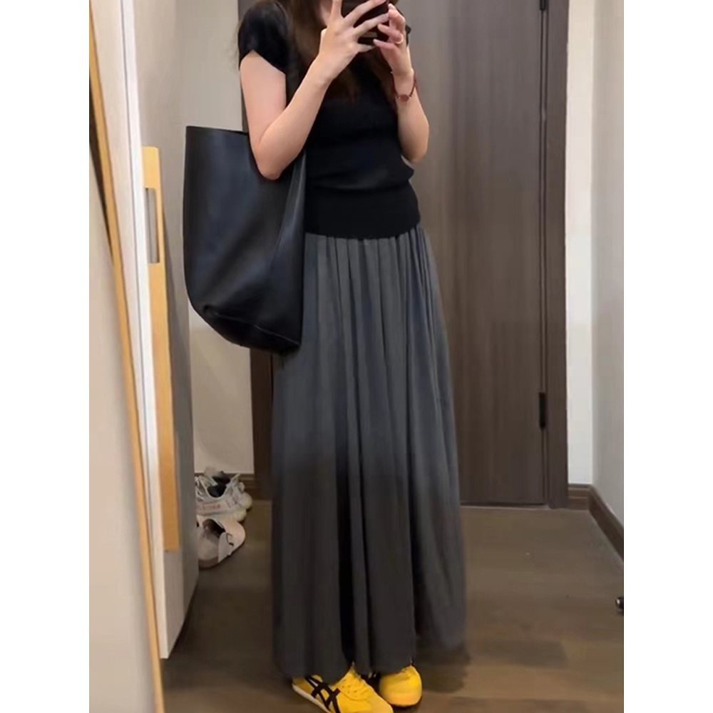 レイジースタイルグレードレープスカートレディース2025年夏新作大きいサイズスカート太ったmm痩身Aライン気質ロングスカート