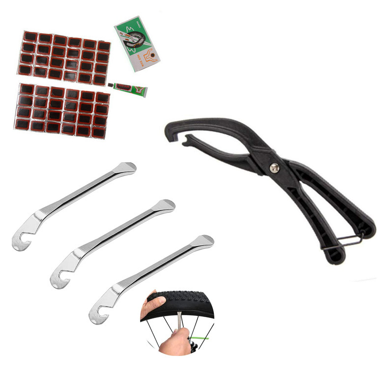 自転車のマウンテンバイクのタイヤのペンチにタイヤのレンチをつけます。