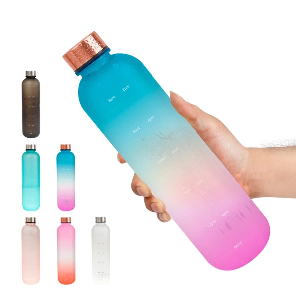 1000mlグラデーション色の宇宙コップのコップpp運動の水筒のプラスチックのコップは時間の目盛りが付いています。