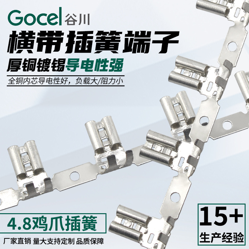 谷川4.8鶏爪挿しバネ横帯に黄銅メッキ錫純銅の導電性が良好な端子