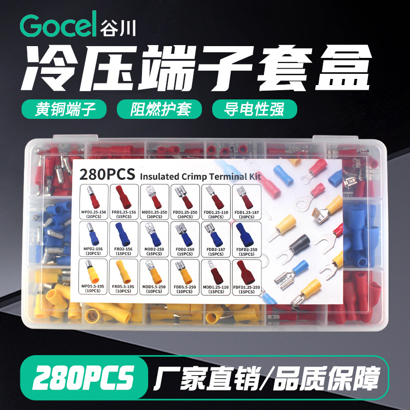 谷川280pcs冷圧セットケース冷圧シリーズ黄銅錫メッキ難燃シース端子