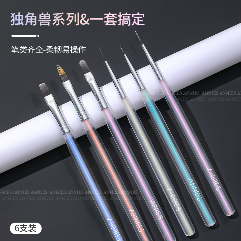 ユニコーンシリーズのネイルブラシ6本の常用型光線治療の色絵の線のグラデーションの筆のネイルサロンの専門のツール