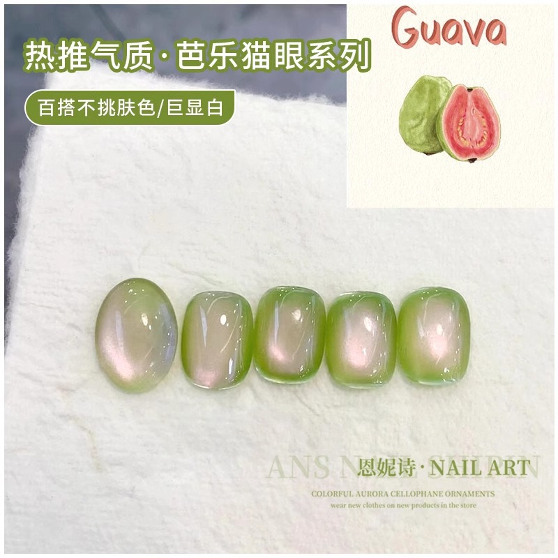 恩尼詩ネット紅爆金巴楽猫眼爪油ゴム2025春夏新作緑ガラス珠猫眼ゴム