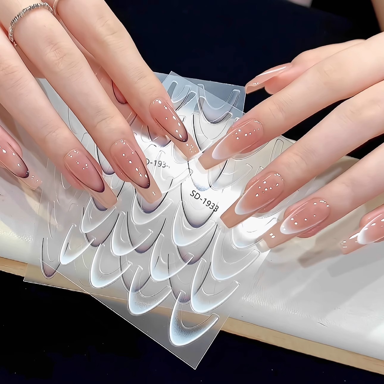 ネットの赤い爆発のグラデーションのフランスのネイルシールは簡単で、三日月のほほえみの縞のシールの弧の形の爪の貼ることができます。
