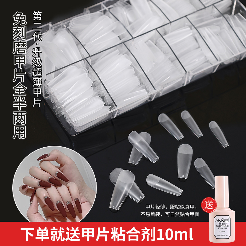 ネイルの薄い無痕の甲片は甲専用の無刻磨透明の半貼りを着用しています。