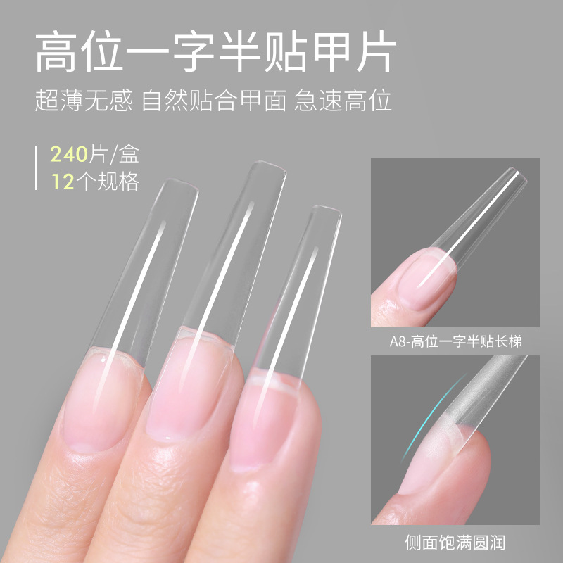 超薄無痕高位一字半貼り甲片無研磨長梯楕円ネイルアートポジショニングパッチ美甲店専用
