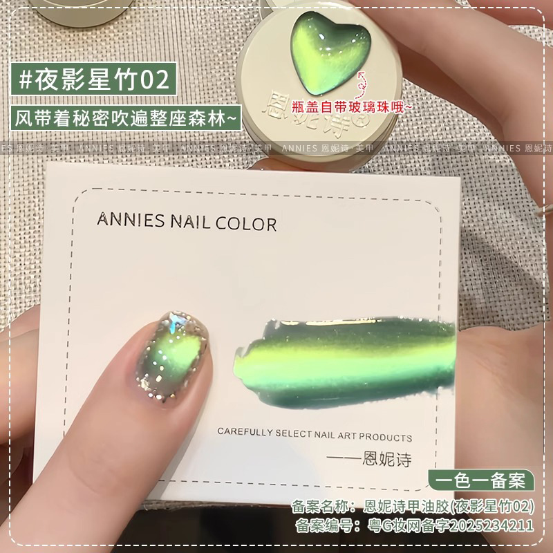 Ennis 夏夜の影スター竹キャットアイマニキュア接着剤新しいフラッシュグリーンライトセラミックガラスビーズキャットアイ接着剤