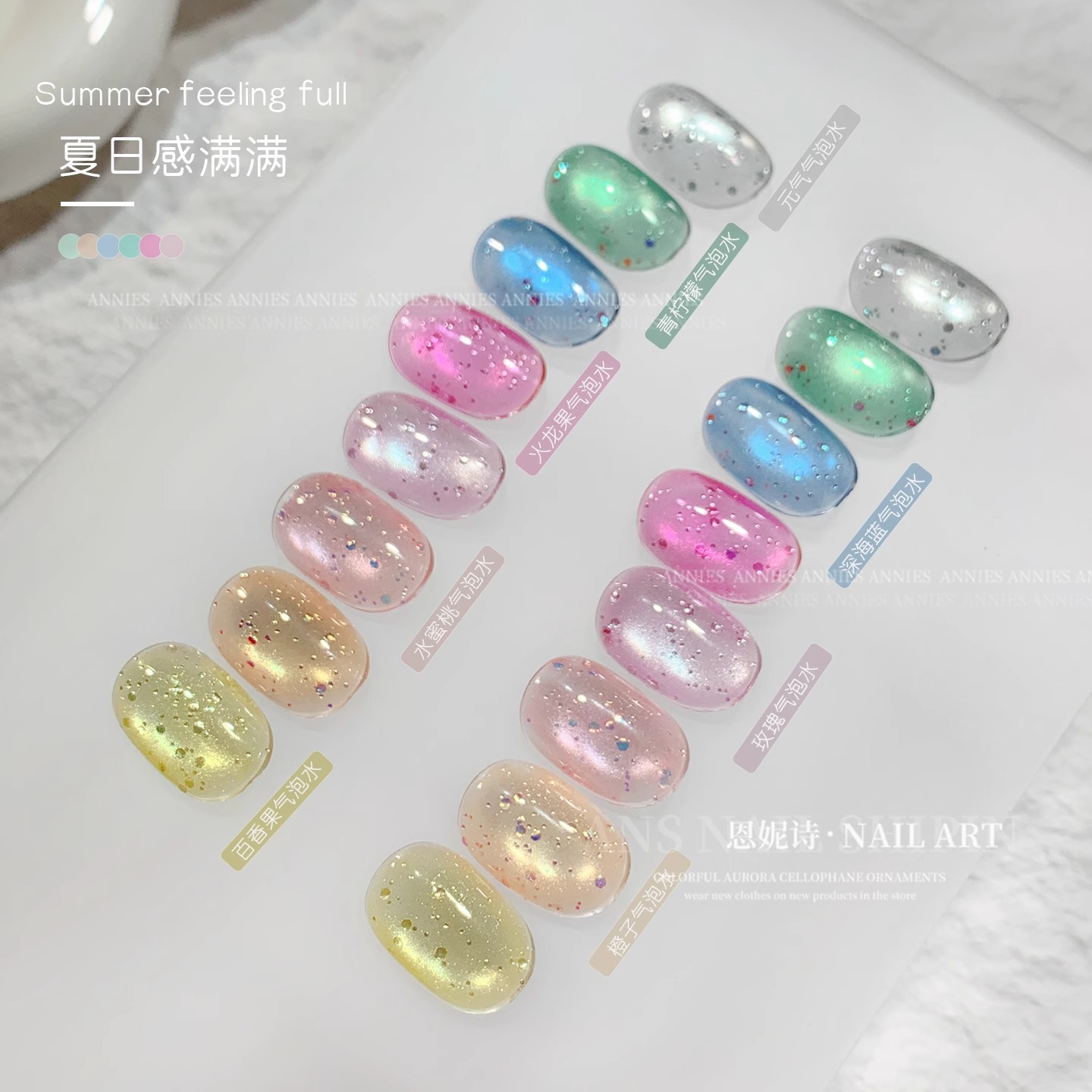 Ennis サマースパークリングウォーター点滅キャットアイマニキュア接着剤アイスクリスタルホワイトニングアイス透明ガラスビーズクリスタルマニキュア接着剤