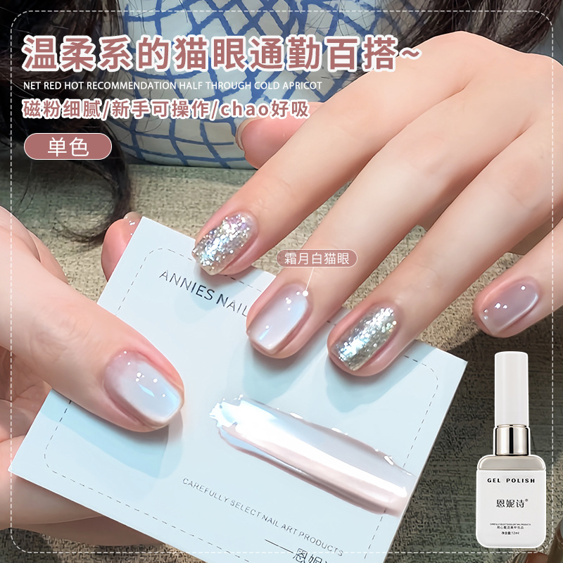 Ennis Cream Moon ホワイトキャットアイマニキュア接着剤 2025 新しい爆発的なユニバーサル多用途高密度スパンコールマニキュア