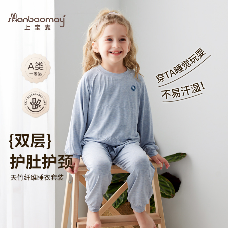 上宝麦秋新商品子供パジャマ天糸モーデール50s長袖男女児童家庭服二重保護腹
