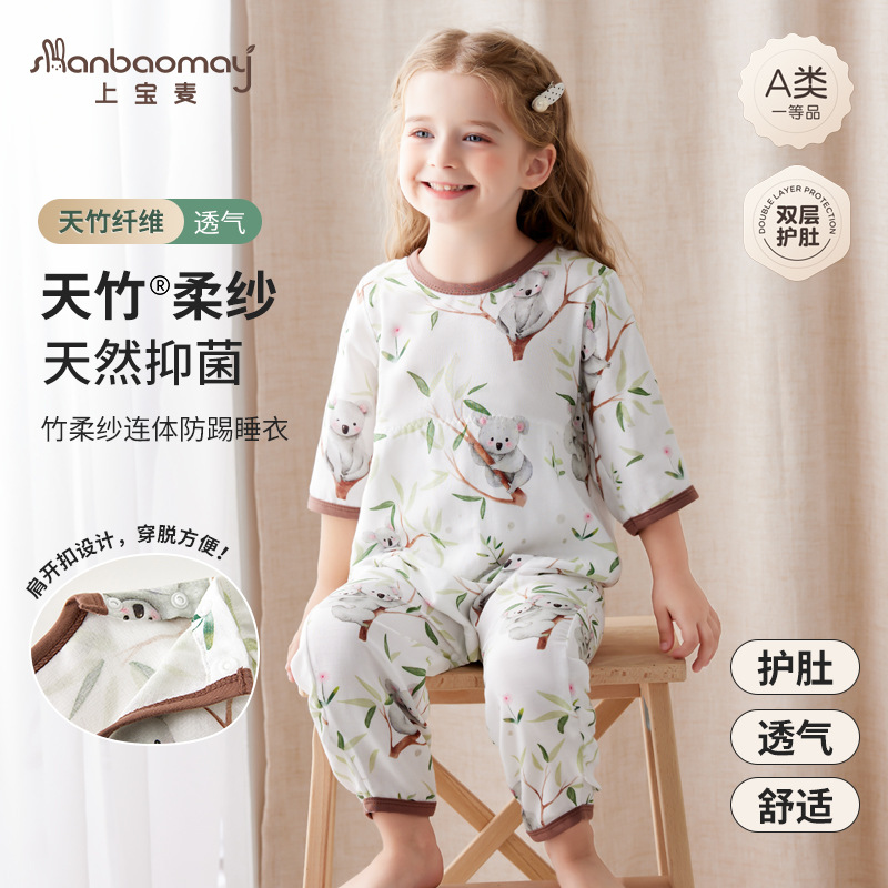 上宝麦春夏児童連体パジャマ蘭精天糸モーデール排汗男女児童児童家庭服寝袋