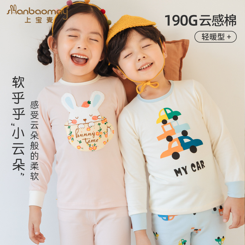 上宝麦秋冬子供下着セット保温柔らかい男女子供服秋衣ズボン家服華絨付蓄熱