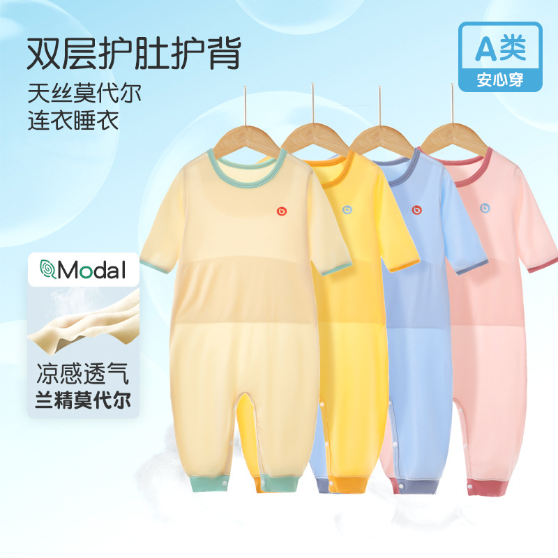 上宝麦の新型の夏の子供の連体のパジャマの天糸のモーデールの二重のお腹を保護します。
