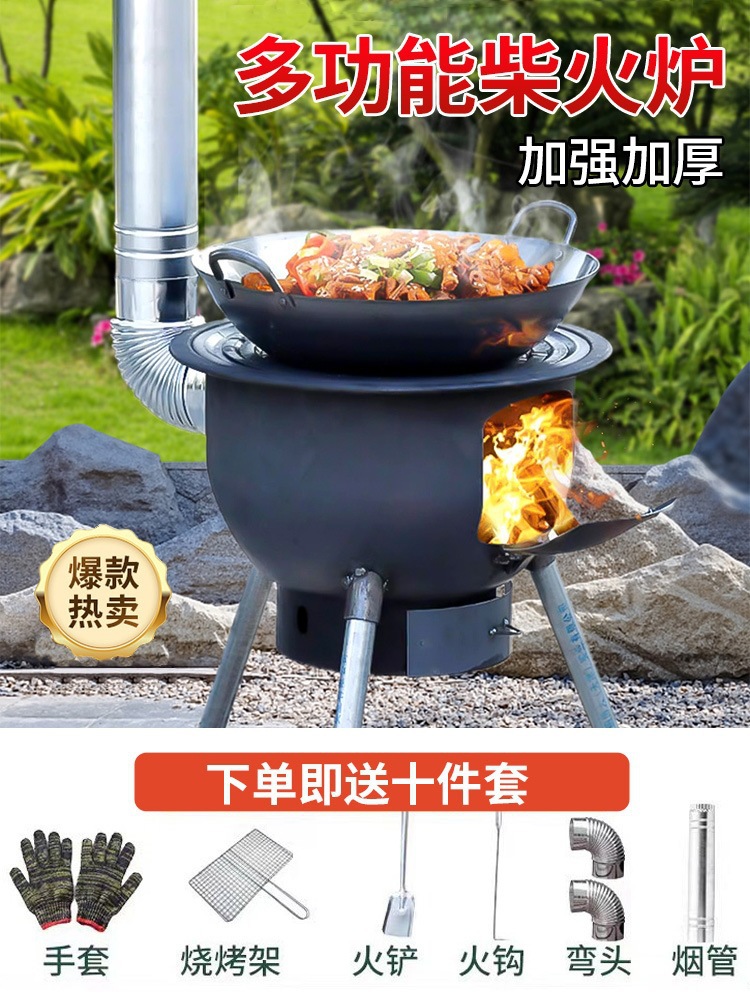 薪ストーブ、薪燃焼、家庭用新型屋外ストーブ、田舎の移動式土鍋ストーブ、大型鍋ストーブ、薪ストーブ