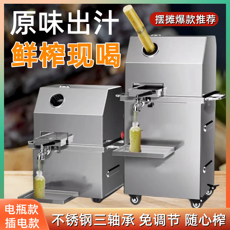 サトウキビジューサーのジュースかす分離業務用屋台式電気プレスステンレス立式乾燥サトウキビジューサー