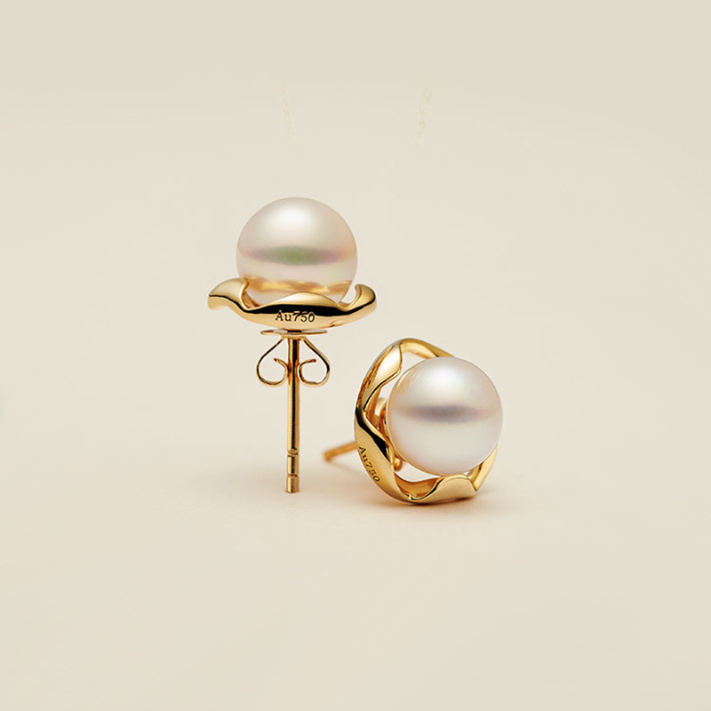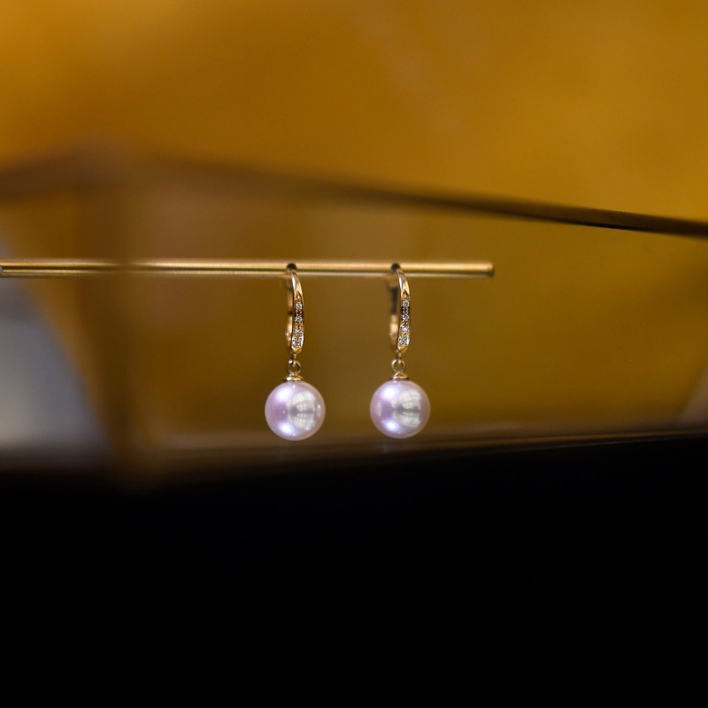 フランス風ですかオーロラゴールド系akoya天然淡水真珠メッキ18k金角型ピアス女