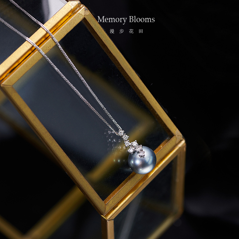 黛雪真空メッキ18kプラチナジルコン黒真珠灰珠ネックレス女性軽豪華高級感気質鎖骨鎖