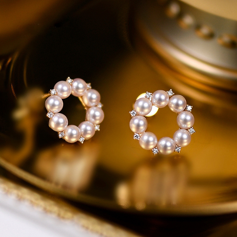 S925銀針花輪真珠ピアス女性レトロ高級感軽贅沢円イヤリングins軽贅沢小衆デザイン