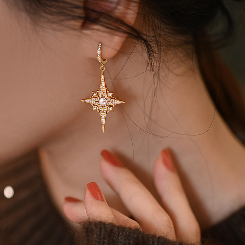 四野星ファッションol幾何学六芒星高級デザイン感フランス風気質真珠イヤリングアクセサリー