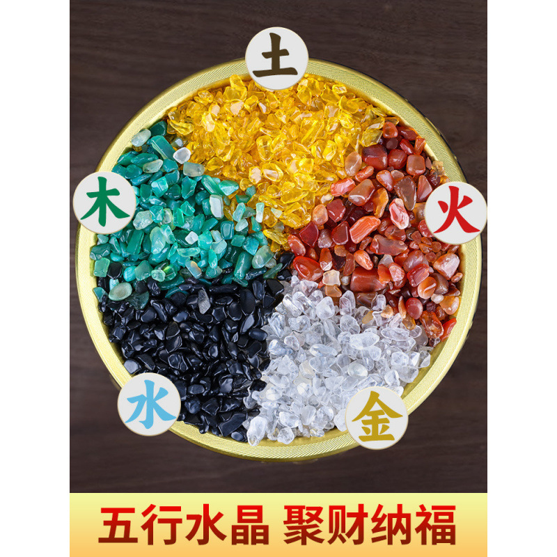 天然水晶砂利、五色石、原石、シトリン、白、緑、赤、宝の穀、五色石、五行瑪瑙粒飾り