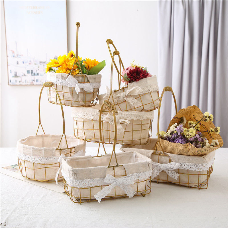 Lanzi ポータブルフルーツアイアンフラワーバスケット金属籐植木鉢フルーツバスケット卵バスケット織フラワーアレンジメント収納バスケット