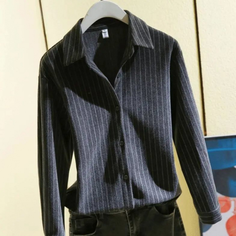 シャツレディース秋冬オリジナル起毛厚みのあるストライプ長袖2023新しいトレンディなレトロな多用途ジャケットシャツ
