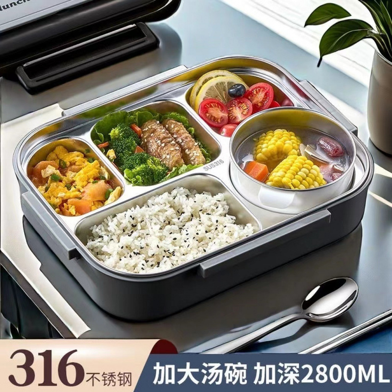 316ステンレス製蓋付きランチボックス、オフィスワーカー向け、電子レンジ対応、断熱、大容量、分離食堂