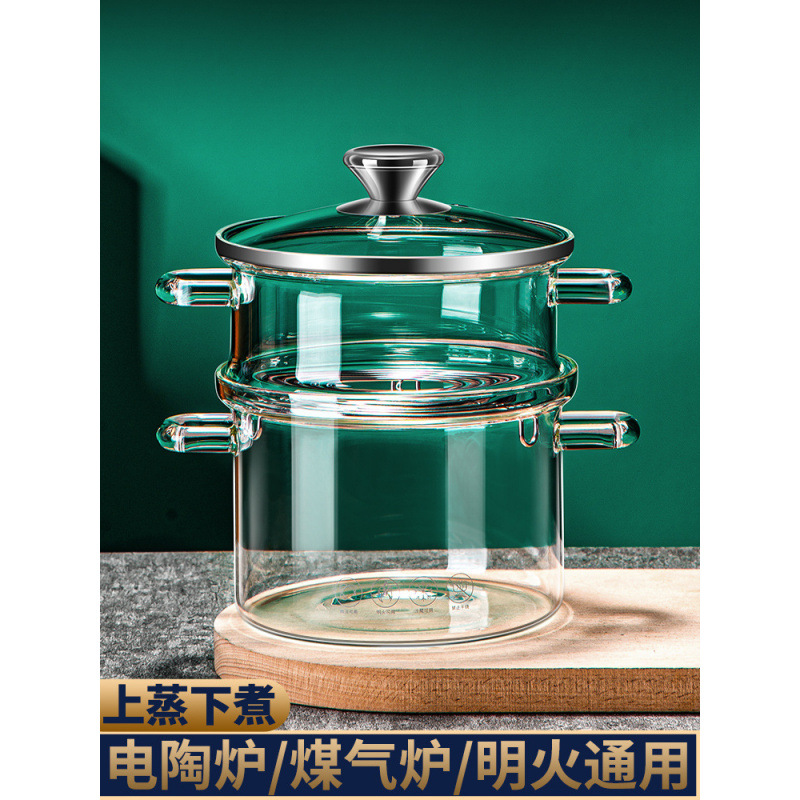 ガラス鍋、直火、高温耐性シチューポット、高ホウケイ酸家庭用電気セラミックストーブ、透明な二層蒸し器