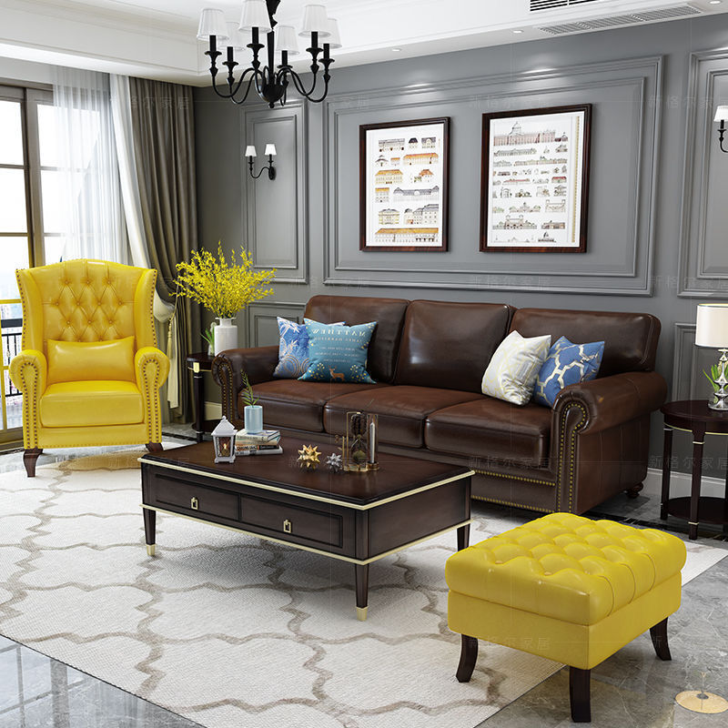 アメリカ式ソファー現代シンプルで贅沢なトップ層牛革リビングルーム真皮ソファセット小戸型皮三四人位